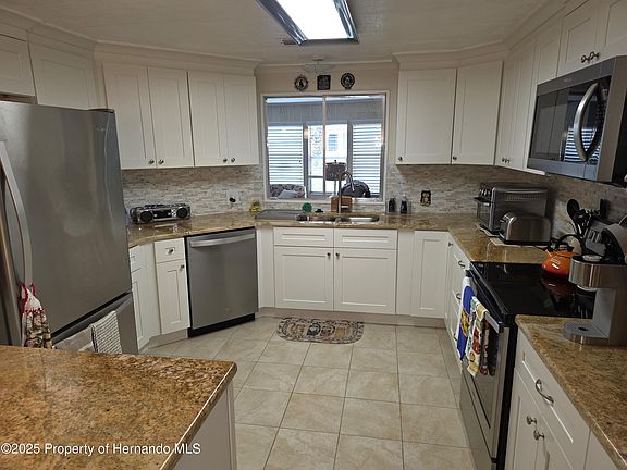DOUBLE LOT! High Point Community Home - 2 Bedrooms 2 Full Bathrooms And A Carport- Entering The Home There is A Screened Porch- Newly Remodeled Kitchen With Stainless Steel Appliances, Breakfast Bar And Granite Counter Tops-The Primary Bedroom Has A Walk In Plus A Double Closet, Shower And Granite Counter Top- The 2nd. Bedroom Also Has A Walk In Closet- Guest Bathroom Also Has Been Updated With Granite And Tub Enclosure- There Is A Glass Enclosed Lanai- Another Front Covered Porch, Irrigation Well, Utility Shed With Newer Water Heater, Work Bench, Outdoor Gutters- Open Floor Plan Call Today For A Showing.