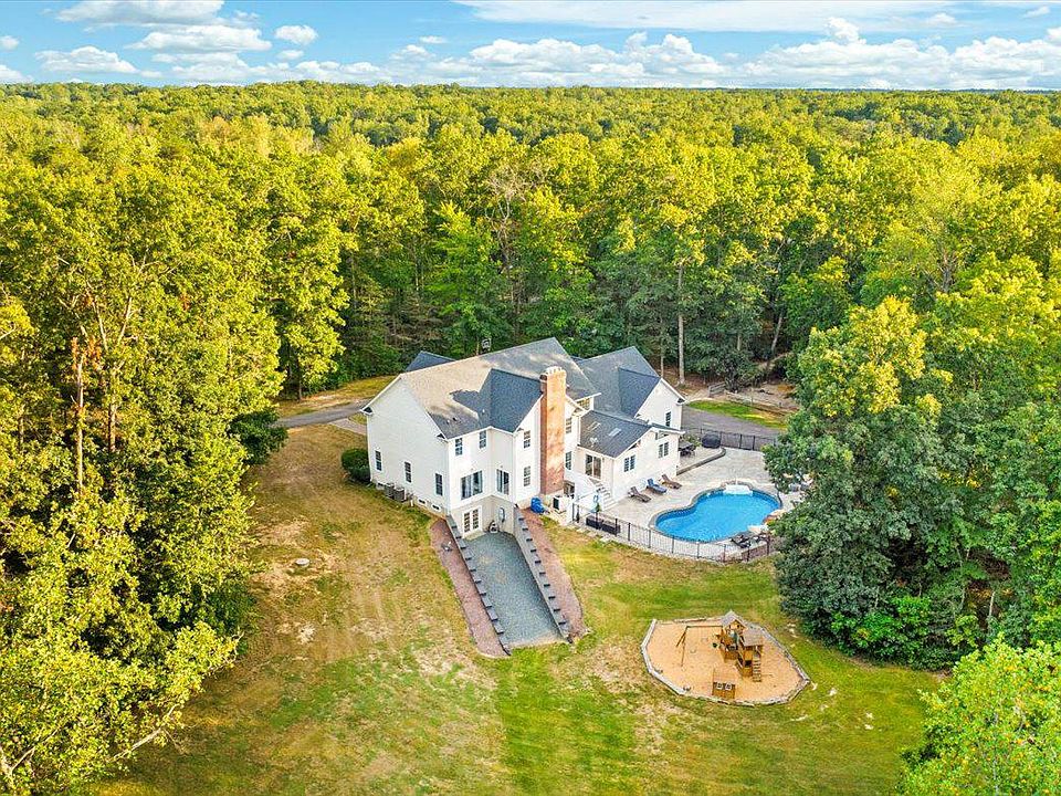 1% Lender Credit available to buyer!! CUSTOM BRICK ESTATE WITH SALT WATER POOL, GUEST HOUSE AND 3400 SQ FT GARAGE ON 46 ACRES. Welcome to Your Private Virginia Estate. Tucked away on 46 serene acres, this custom-built brick estate home offers 6,000 square feet of refined living space, blending timeless architecture with modern luxury. A circular drive, stately columns and a side load 4 car garage set the tone for the elegance that awaits inside. Step into the grand two-story foyer, where dual sweeping staircases create a breathtaking first impression. The main level boast an eat-in gourmet kitchen with granite countertops, stainless steel appliances and beautiful cherry cabinetry. Large formal dining room is perfect for entertaining or Sunday dinners. Work from home in the oversized office or relax in not one but two family rooms. Off the kitchen, spectacular cabin-inspired addition invites you to unwind with wood beamed ceilings, floor to ceiling stone fireplace and walls of windows that frame your views of the salt water pool with water features and stamped concrete - the ultimate backyard oasis. Upstairs, discover 5 bedrooms and three full baths, including a jack and jill layout and a show-stopping "princess suite" that feels right out of a fairytale. Primary suite is a sanctuary of its own, featuring vaulted ceilings, wood burning fireplace and spa like bath. The finished walk out basement is designed for entertaining, complete with a wet bar and kegerator, fitness room, abundant storage and yet another wood burning fireplace to warm the cool Virginia nights. But the estate doesn't end there. A separate 3 bedroom, 2 bath rambler with 2 car garage is excellent for multi-generational living or rental income. Do you own a business, hobbyist, car enthusiast? You will be pleased with the 3400 square foot climate controlled garage with vehicle lift, office and bathroom. The floors are even heated!! From its elegant interiors to its resort-style amenities and unparalleled acreage, this estate is more than just a home - it is a lifestyle.