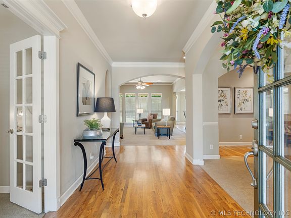 CUL DE SAC LIVING IN GATED WAKEFIELD VILLAGE! Quiet and Comfortable, this home has it all - 3 Bedrooms downstairs all with En Suite Baths, Office, Formal Dining, Open Kitchen/Living plan, Fantastic upstairs Man Cave, plus a 4th Bedroom that can be a great Bonus or Workout Room. Huge Back Yard, and a Neighborhood Park, Trails, Fishing Pond & POOL! Jenks West School District