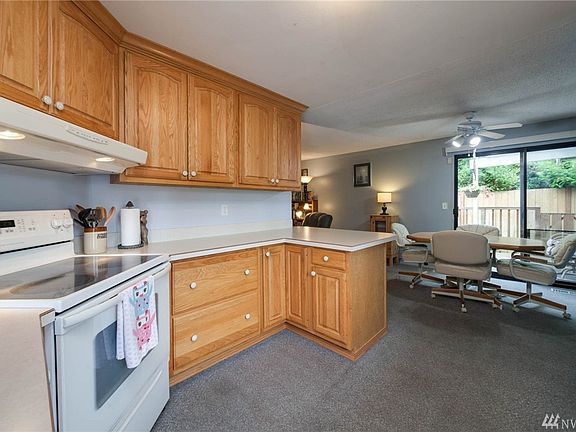 Very nicely maintained rambler with architectural composition roofing and cedar wood siding. All appliances to remain, including 2nd refrigerator in garage. The living room features a brick gas fireplace, and there are adjacent flanking builtin bookcases. There is a covered deck and a 2 car garage. Water heater is a larger 50 gallon gas tank. The yard is level, nicely landscaped and features fruit trees and gardening spaces.