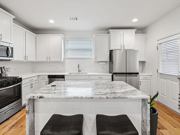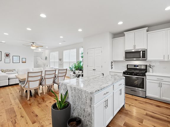 Hardwood floorsStainless steel appliancesWaterfall islandQuartz counter topsBonus flex roomKitchen appliancesExtended driveway