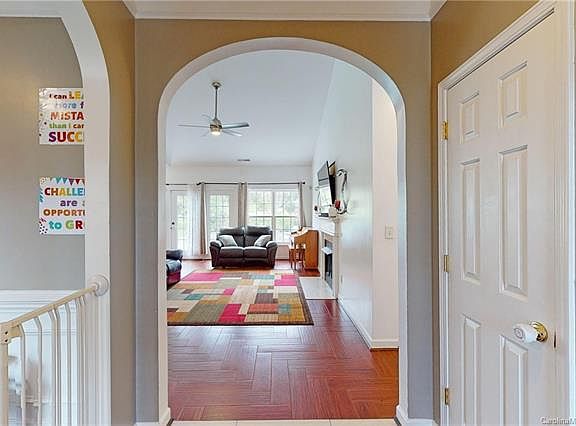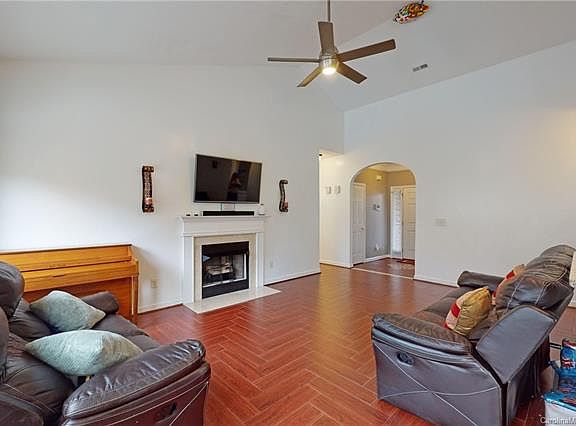 You will be enchanted by this perfect 4 bedrooms, 2 baths Ranch style home with covered porsche and a beautiful red brick front. Arched doorways and modern ceiling fans in each room will welcomed you. Upgraded granite kitchen with all Samsung matching appliances which will convey with two year old washer and dryer; upgraded custom tile floors through-out and carpet in bedrooms. Garden tub in Master bathroom with nice decorative tile, custom glass shower and granite sinks in both bathrooms. 2019 Architecture style roof, 2 year old water heater. Impressive private landscaped patio in corner cul-de-sac lot will be a delight for everyone to enjoy; with walkway access to the street. All this with your private security system installed. Walking trail & pet friendly. Well rated schools. Pool, playground & tennis court. Quiet neighborhood with wide streets and sidewalks. Close to fun shopping areas and good restaurants. Easy access to I-485, I-85, I-77 and Harris Boulevard.