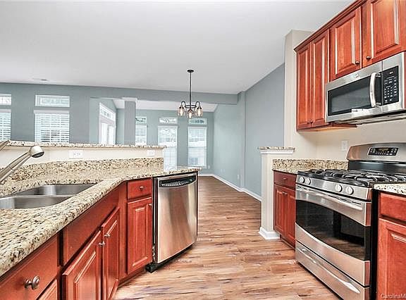 This townhome is indeed a rare find. Fantastic and meticulously maintained, this END UNIT townhome is on a corner lot with an over-sized and finished TWO car garage. Outside enjoy the generous back yard space with a fenced in yard. Step inside and you will love the brand new Luxury Vinyl Plank floors on entire main level, upstairs bathrooms and dedicated laundry room. These floors have never been lived on! Kitchen equipped with granite countertops, stainless steel appliances and plenty of counter and cabinet space for all your kitchen needs! The main level also features a sunroom area (builder upgrade) & a dedicated office space/bonus area. Generously sized master suite complete with TWO walk-in closets! HOA includes water, all exterior maintenance and landscaping. Fantastic Steele Creek locations, close to shopping, restaurants and easy access to I-485 & I-77. Where else in Charlotte can you find a 2 BR townhouse with 2200 square feet for under $300k? Won't Last Long!