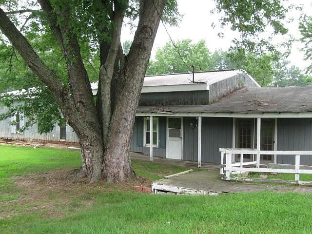 1 story home on over 10 acres. Home is in need of much work and may not be financible other than as a rehab loan. Semi open kitchen, living room and dining room. Garage is on back of house and accessed thru the main hallway. Appears to be structural issues. Sold AS-IS, where-is. Access by easement - no road frontage.