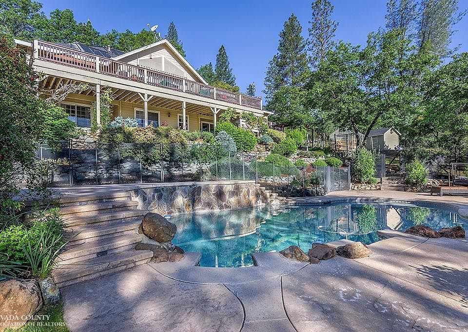 This ELEGANT home Boasts Gorgeous VIEWS and EXPANSIVE DECKS that extend the living space. GENEROUS Open Floor Plan is Designed for Entertaining and Family Gatherings. Great Room has Cozy FIREPLACE and BAR area. SUN FILLED rooms open to long range Views from multiple decks. You will LOVE the GOURMET KITCHEN featuring Stainless Appliances by Viking, with Granite counters and storage galore. Large Laundry Room has extra storage and room for a freezer. All day to day living spaces are located on the main floor. A Jetted Tub and huge Walk In Shower add a touch of Luxury to the Romantic Master Suite. This pretty 3+ Acre parcel offers Privacy and Glorious Gardens, a GREENHOUSE and Sparkling SWIMMING POOL, Plus a Horse Shoe Pit! Conveniently Located in Prestigious Mountain Lakes Estates where residents enjoy access to Private Lakes and Ponds, Hidden Trails and Secret Beaches on fabulous Deer Creek. This parcel has direct access to Deer Creek. 4th bedroom permitted as storage.