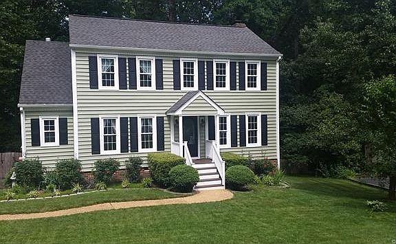 This pristine home is maintenance free and is located on a quiet cul de sac in a great school district with fenced rear yard. Beautiful leaded glass front door new vinyl siding and 30 year warrantied windows and new roof, and Trex front porch decking, Also, a terrific addition added a super family room and finished walkout basement with endless possiblities. Hardwood floors, newer 2 zone heating, lovingly maintained, lots of storage, master has an extra room for an office, a nursery, a dressing room, etc. All bedrooms are corner bedrooms and are spacious. Sunny kitchen with stainless appliances, lovely tile floor, so many extras. Great schools, close by shopping and access to the the Powhite and Rt 288 Sellers are offering an AHS upgraded combo 1 year warranty. Fireplace and chimney convey as is with no known defects.