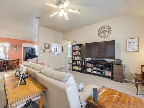 This adorable home is ideal for first time home buyers, investors, or someone looking to downsize! This property offers a perfect blend of comfort, style, and convenience in a fantastic location. Step inside to discover a spacious and inviting interior with recessed ceilings, featuring 3 bedrooms, 2 bathrooms, and 1,304 square feet of living space. The open floor plan seamlessly connects the living, dining, and kitchen areas, creating an ideal space for both relaxing and entertaining. The Kitchen is equipped with tiled counter tops, an electric stove, and abundant cabinet space. New roof and hot water tank in 2017, NEW HVAC in 2023. The primary bedroom has a walk-in closet and your own private bath with tub/shower combo. Both secondary bedrooms provide plenty of space. Unwind on your back patio in your fully fenced backyard. Conveniently located in Chisholm Village, just minutes away from Top Golf and the Chisholm Creek area that offers entertainment, shopping and plenty of dining options.