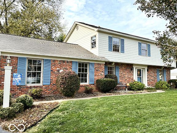 Outstanding opportunity to be in one of Carmel's favorite neighborhoods! Sitting on Brookshire's premier cul-de-sac, you'll fall in love with this beautifully updated home. Meticulously maintained with charm and quality around every corner: open bright rooms, inviting foyer, enhanced woodwork and custom details. Fabulous kitchen where dining room wall has been removed, includes custom maple cabinets, island, hardwoods. Cozy yet spacious family room features a gas fireplace and built-ins, opening to an impressive sunroom with vaulted ceiling. Nearly half acre lot has a mature trees, concrete patio, firepit, and beautiful perennial landscaping. All bathrooms updated! Bonus space in the finished basement and an abundance of storage. Move-in ready: 2022 HVAC, Pella windows, Hardieplank siding, 2014 roof. Dream location with the pool and golf clubhouse a 3-min walk away. Easy bike ride to Carmel schools, grocery, dining and shopping!