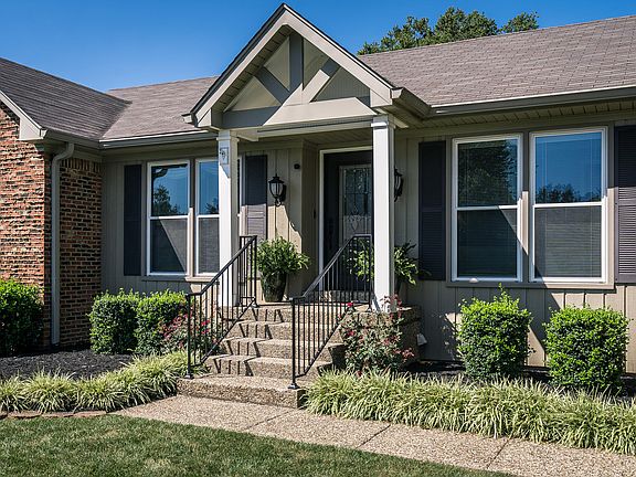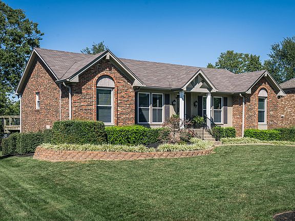 Gorgeous in Goshen! Prepare to fall in love with this extraordinary home in highly sought-after Lakeview Estates. This brick ranch is perfectly situated on a manicured lot and features tons of upgrades and exquisite custom millwork. Stunning hardwood floors greet you as you enter the home. Host family meals in the formal dining room accented with a chair rail. The family room offers the perfect gathering spot with a wood-burning fireplace as the centerpiece. Additional architectural features include vaulted beamed ceiling with ceiling fan, custom built-in bookcases, two skylights and a wet bar making entertaining guests a breeze. The chef of the family will adore the eat-in kitchen complete with a full complement of appliances, planning desk, and custom cabinets with pull-outs. Relax and enjoy the outdoors without all the pests on the screened-in porch. Additional outdoor features include an attached deck that has steps leading to the covered patio below. Here you can sit and admire the meticulous landscaping and park-like setting. Retreat to the owner's suite that features built-in speakers and distinctive accents such as indirect lighting on dimmers above the window treatments. The private en-suite bath provides all you need to keep your morning routine organized and stress-free. There are two other spacious bedrooms on the main level featuring an abundance of closet space and natural lighting. One bedroom is currently being used as a walk-in closet. The second full bath located in the hallway has a raised height double vanity, ceramic tile flooring, and tub shower combo. Additional living space awaits in the finished walkout basement. Here you will find a spacious family room with access to the covered patio, an additional bedroom, full bath, office, and laundry room. Added storage and convenience awaits with an attached garage and a separate detached garage fitted with heating and air that would make a perfect workshop for any hobby. Additional features of this lovely home include: Central vac, new heat pump August 2020, built-in speakers, and Hepa filtration system. This stunning home offers luxury living and convenient access to award-winning Oldham County schools, restaurants, shopping, parks, and state-of-the-art medical facilities. Make your appointment to view today!