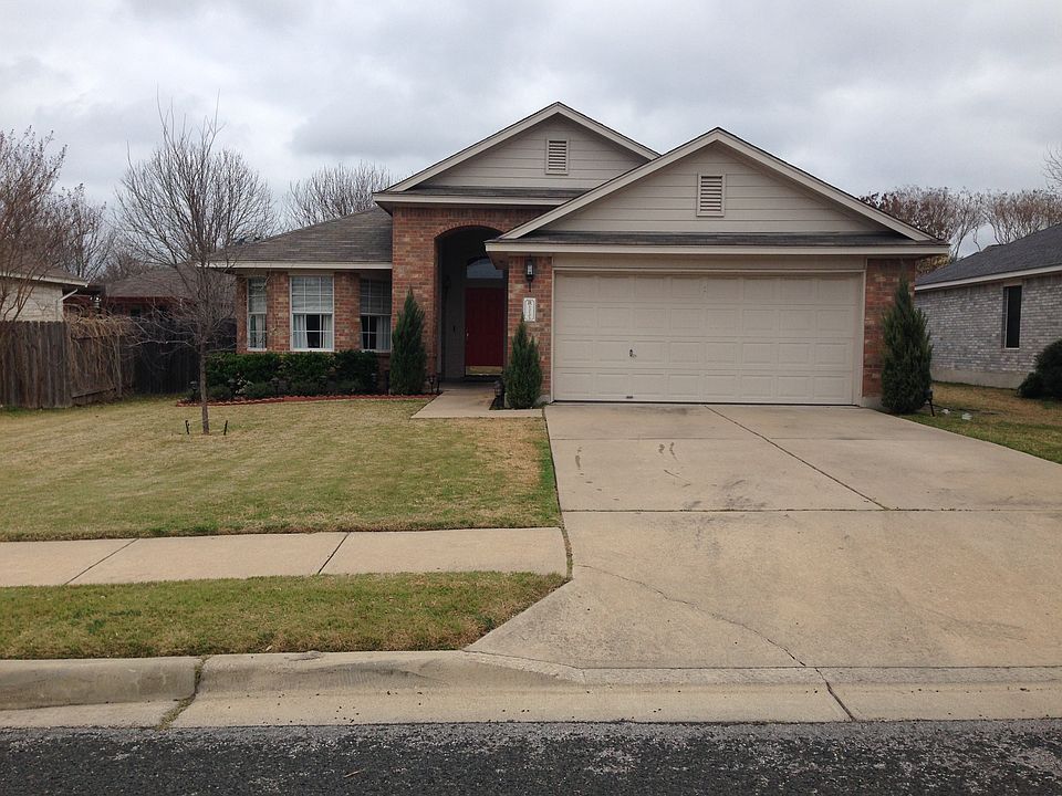 Modern one story floorplan with bright, spacious kitchen and breakfast area at front with bay window, large living room, and bedrooms separated from private master suite (split floor plan). Tile flooring in entryway, hallway, kitchen/breakfast and utility room. Wood flooring in family room, formal dining room, all bedrooms and closets (NO CARPET)! Vaulted/high ceiling. Extended back patio. Great neighborhood with community center, park & playground, pool & swim team. Conveniently located only one block from Baranoff Elementary! Feeds into Bowie HS and Bailey MS. Custom solar screens, low utilities and maintenance. Spacious backyard with variety of fruit trees and an large elm tree.