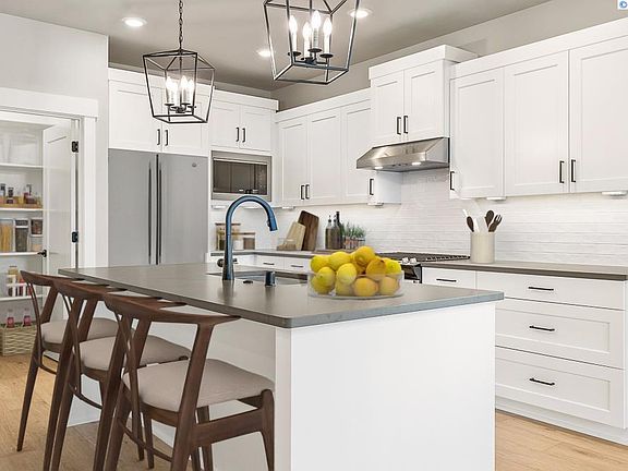 MLS# 278766 Solstice is a new premier Pahlisch Homes community that is planned to feature resort-style amenities, including a pool, clubhouse, and gym, once finished. The Tahoma is a brand-new design from Pahlisch Homes, blending modern style with a warm, inviting atmosphere that clients love to call home. This 1,905 square foot floor plan features 3 bedrooms, 2 baths, an office/den, and a three-car garage with a Tandem Bay. The entryway makes a stunning first impression with hand-textured wall finishes, coffered ceilings, and expertly crafted millwork and trim. The spacious great room highlights a breathtaking fireplace with a tile accent. The kitchen is beautifully appointed with quartz countertops, full tile backsplash, large kitchen island, stainless steel appliances, built-in microwave in cabinetry, and a hood fan above the range/oven. The primary bath offers a luxurious feel with a tile shower, and you'll appreciate the linen closet that provides extra storage space. A sliding door leads to an outdoor living area with a covered patio, perfect for relaxing or entertaining. Additionally, there's a convenient mudroom as you enter from the garage. This home is located on Lot 117, Phase 2 of Solstice. Come and visit our Model Home we are open Friday-Sunday 11-5 & Monday-Tuesday from 12-5. Future amenity (starting construction September 2025!!) pictures are digital. Contact listing agent or stop by the Model Home to learn about our amazing incentives!!! Interior picture are virtually staged.