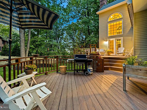 Impressively immaculate and meticulously maintained with numerous upgrades and renovations, this handsome home impresses from the moment you cross the threshold! One of the larger models in the neighborhood, this home boasts soaring 2-story ceilings, a spacious gourmet kitchen with newer appliances, a stately main level library with custom built-ins and a fabulous floor plan that easily accommodates your largest gatherings! The 1.5 year young primary suite renovation has created a luxuriously elegant bathroom with designer flairs such as bullnose edge quartz countertops and frosted glass doorknobs. The expansive primary bedroom is warm and airy featuring a soaring cathedral ceiling, two walk-in closets and a cozy sitting area overlooking the greenery of the back yard. The finished walkout lower level has full-size windows and french doors which bring abundant natural light into the recreation room and 5th bedroom. Enjoy magnificent sunsets from the main level family room and on the large tiered deck. The deck offers both a dining/ picnic area with awning plus a separate grilling area, so you will be poised to host some of the finest backyard soirees in the neighborhood! Situated at the end of a cul-de-sac, the property offers sought-after privacy outside and perfectly presented and generously-sized living spaces inside - the perfect package both inside and out.