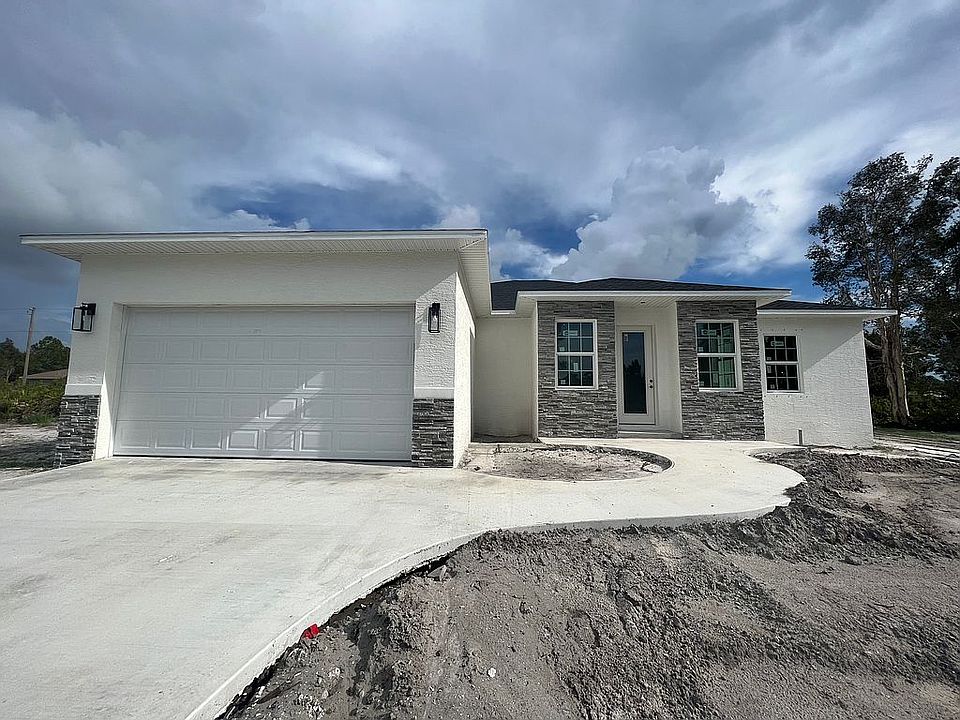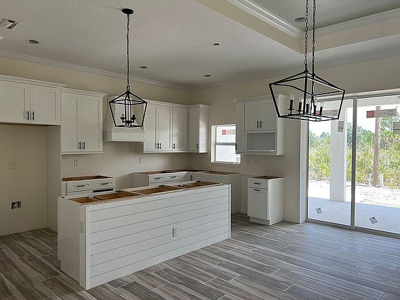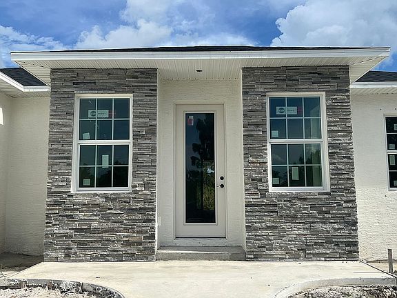 Wanting a new built home without having to wait 2 years for one? Circumstances have suddenly made available this amazing, custom designed, 3069 square foot OPEN and SPLIT floor plan home, centered on nearly a HALF ACRE with PUBLIC WATER and NOT in a flood zone! Under 45 days to completion. Beyond the impressive brick entrance, you step into soaring 10' volume ceilings throughout that have sunken 11' Tray's which uncommonly are in nearly EVERY room, plus the entire home is accented with 6" Crown Molding and 5 1/4" Baseboard Molding! 3 Bedrooms, Office, Great Room, Dining Room, Lanai, Laundry Room, 2.5 car garage, and a 12'x12' Patio all nestled in the riverside Community of Gulf Cove. Kitchen boasts not only a walk-in pantry, but an additional 8' closet pantry...talk about storage! Soft close, solid wood cabinetry, custom range vent, Stainless Steel appliances, an 8' island with shiplap front, high level granite, & designed to be the entertainment mecca as it flanks the 19' Dining room opened to the Great room, & 24' lanai with its pocketed sliding glass door. Master is a traditional Master Suite, with an open, en-suite bathroom & 15' walk-in closet. Incredible 18' Bedroom area has 4 recessed lights in the tray with each owner's bedside having a private overhead light & switch, plus a personal entrance to the huge screened lanai. Closet has a secluded rear area that would make a great hidden safe, gun or precious keepsake closet. Lavishly designed 9'x7' shower & bathtub area has a 5'x7' shower with dual heads & shower seat next to a jetted deep soaking tub, both surrounded by marbled wall tile with oversized stone flooring. Dual sink vanity is an incredible 12' long topped with higher end Granite & seated vanity area. There's a 4' wide by 10' high' linen closet, two transom windows, & expected privacy in a double hung, windowed water closet with its own exhaust fan & an additional one adorning the bathing area which all top off the thoughtfully planned out Suite. Porcelain plank flooring runs throughout the home with a change of color in the Laundry Room for touch of Florida fun! Office has custom solid wood shelving, customize recessed lighting, plus sliding glass doors to lanai. Guest bathroom has fully tiled walk-in shower, with a 3/4 walled entrance which conveniently allows for no needed curtain or glass doors! Both guest bedrooms have add'l recessed lighting plus ceiling fan. Open foyer is designed to be flooded in sunlight, giving you clear view through the home to the lanai. Illuminated yet sunlight protected 2'x3' niche in wall for artwork or special portrait. 19' x 29' Garage has two 50 amp/220 volt outlets for electric vehicle charging or generator hook ups, plus is the location for the tankless water heater & utility sink. Hurricane shutters & doors for 100% protection; Home Owner's insurance quoted at $1200 per year w/ NO FLOOD INSURANCE required. The hidden gem of Charlotte County's Gulf Cove Community has a private park & BOAT LAUNCH, residents may use for $95 per year, info at GulfCove.org. ROOM FOR A POOL on this dbl lot, plus room for additional garage, shed, RV or boat parking in this non-deed restricted area just minutes to golf courses (6 min), Englewood Beach (17 min), public parks, shopping (Grocery 6 min, Home Depot 8 min), restaurants, & all the amenities Boca Grande, Rotonda West, Englewood, Venice & Port Charlotte have to offer! ACTIVE CONSTRUCTION SITE, DO NOT ENTER, must call for a private tour.