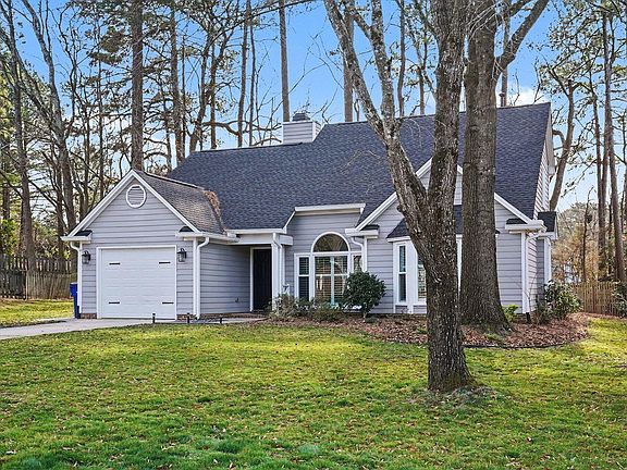 Adorable, beautifully refreshed cul-de-sac home located in the highly desirable Harrington Grove subdivision! Enjoy peace of mind with all new windows (2023) and new HVAC (2025), Roof (2020) plus fresh paint in the living, dining, and stairway areas (2026). The spacious, open main living and dining areas feature a wood-burning fireplace and plantation shutters throughout the first floor, creating a bright yet cozy atmosphere. The renovated kitchen (2022) shines with quartz countertops, custom white cabinetry, a center island, and stainless steel appliances: microwave (2025), dishwasher (2026), oven (2022), and refrigerator (2022). A large pantry and separate laundry room offer abundant storage. The primary suite was refreshed in 2023 and includes a new double vanity, smart mirror, separate tiled shower, garden tub, custom closet organization system, and a separate water closet. Step outside and enjoy the charming, tree-filled natural backyard, perfect for relaxing or entertaining family and friends. Optional membership to the Harrington Grove Swim & Racquet Club provides access to a pool, tennis, pickleball, and volleyball courts (separate HOA fee). Conveniently located near dining, shopping, schools, RTP, and RDU this home truly has it all!