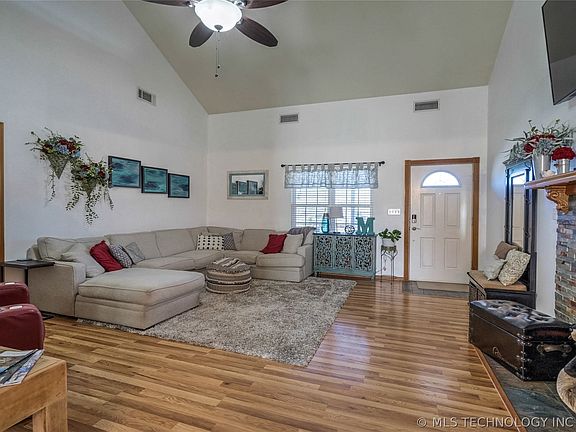 A Must See in Collinsville! This 2006 home sits on a half acre that backs to a greenbelt. Close to HWY 169 and only a few miles to Owasso. This home is move-in ready 3/2/2 Vaulted living room. New roof 9/2022. Master downstairs,