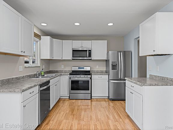 Fall in love with this cozy updated three bedroom, one and a half bath ranch in Sterling Heights. Situated on almost a quarter acre, this double corner lot is fenced in on all sides for your family's safety and peace of mind. This home is move in ready, with some exceptional updates like a new roof in 2019, furnace and water heater in 2022, updated electrical and plumbing in finished basement , security features like a ring doorbell, nest thermostat, keyless entry keypad, and security camera in back yard, updated stainless steel appliances and Hanson windows with transferable warranty. The partially finished basement has Luxury vinyl plank flooring, built in reading nook, and lots of space to spread out. There is a 1/2 bath, designated laundry area with new washer and dryer, and ample storage space. This cozy home is small in size but huge in amenities. All appliances and technology stay with the house. Attached 1 car garage for storage and parking. Close to the sterling Heights nature Center, trampoline park, restaurants, shopping and easy access to the freeways.