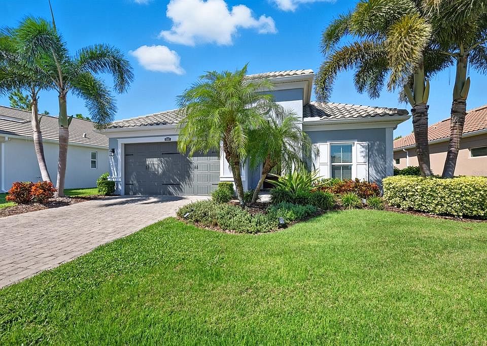 Welcome to this contemporary 4-bedroom, 2-bath, 2-car garage home built by CalAtlantic Homes in the exclusive gated community of Arbor Grande. This pristine residence showcases ceramic tile throughout, 8-foot doors, and a bright open floor plan filled with natural light. The gourmet kitchen features KitchenAid appliances, granite countertops, and a walk-in pantry, flowing seamlessly into the spacious living and dining areas — perfect for entertaining or relaxing in style. This home also features 8 foot interior doors, 5 inch baseboards, 8 foot garage door, paver driveway and tiled roof. Enjoy the covered lanai and completely fenced private backyard, (no rear neighbors) with freshly painted interior and exterior, brand-new AC, new water softener, and window treatments throughout. Arbor Grande offers resort-style amenities including a heated pool, fitness center, clubhouse, bocce ball, and sand volleyball, plus an on-site community manager coordinating year-round community events and activities. Residents also enjoy private gated access to Bob Gardner Park with a mile of walking trails, soccer field, frisbee golf, playground, and nature preserves. Paver driveways, tiled roofs, and lush landscaping add to the overall aesthetic of this architecturally pleasing enclave of homes . This nearly new home, is ideally situated across from the pool and clubhouse, and only minutes to shopping, dining, entertainment, parks, and top-rated schools. Come live where others only dream to visit! Vacant and ready to call your new home!