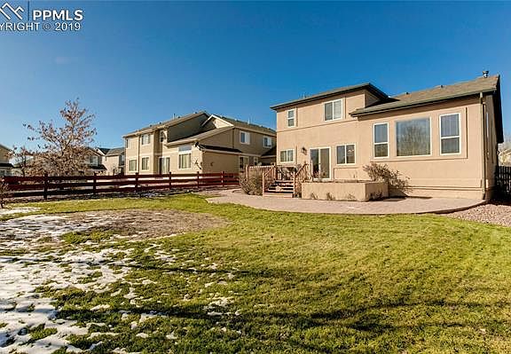 LOVELY, LIGHT, BRIGHT TWO-STORY HOME W/LOTS OF UPGRADES ~ GREAT FLOOR PLAN ~ 3 BED - 3 BATH - 3 CAR + MAIN LEVEL OFFICE W/FRENCH DOORS ~ NEW BAMBOO HARDWOODS ON MAIN ~ LARGE KITCHEN - DINING W/GRANITE COUNTERS, ISLAND & BREAKFAST BAR ~ RAISED LIVING/GREAT ROOM AREA W/15'+ CEILING & PANORAMA WINDOWS ~ HUGE MASTER SUITE ~ UPPER JACK-JILL BATH ~ MAIN LEVEL LAUNDRY ~ BASEMENT FRAMED & READY FOR QUICK FINISH W/MOVIE SCREEN INSTALLED ~ 3RD BAY GARAGE W/NEW WORK BENCH ~ LARGE LEVEL BACK YARD W/SPACIOUS DECK & MOUNTAIN VIEWS ~ EXPANDED STAMPED CONCRETE PATIO ~ WITHIN WALKING DISTANCE TO COMMUNITY REC CENTER W/POOL/BASKETBALL/DINING/FITNESS CENTER ~ NEAR GOLF COURSE ~ 5 MINUTES FROM SHOPPING AND RESTAURANTS ~ EASY ACCESS TO SCHRIEVER AFB - PETERSON AFB - ABSOLUTELY TERRIFIC HOME!
