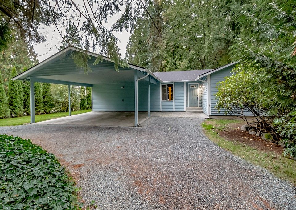 Mid century charmer in desirable Silver Lake neighborhood! Rambler is situated on over a 1/3 acre & features slate floor entry & living room w/ gorgeously retro wood-burning fireplace & brick surround. Generously sized bedrooms w/ new carpet. Covered patio overlooking lush, wooded area. Owner has updated w/ new roof, family room flooring, & interior paint. Close to Boeing, Lake, shopping, schools, & commuting. Needs a little TLC. Perfect 4 first time buyers or investors! Huge potential! MUST SEE