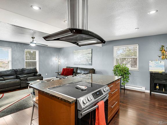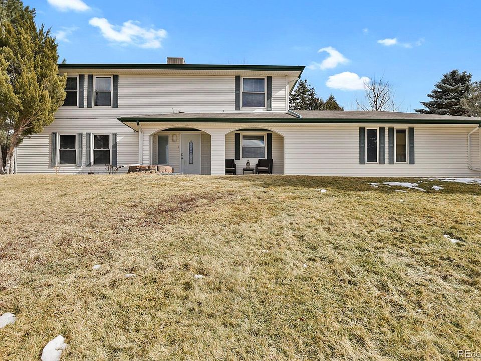 Exceptionally Captivating Raised Ranch Home with Remodeled Gourmet Kitchen! Picturesquely situated on a horse-friendly 2-acre lot just 1.7-miles from Chaparral High School, this 4BR/2BA, 2,366sqft property delightfully charms the senses with a gorgeous exterior color scheme, a covered front porch, and beautiful greenery. Immaculately maintained, the stylish interior dazzles with a cozy foyer, a classic staircase to the walk out basement with metal rails, stunning flooring, an openly flowing traditional floorplan, tons of natural light, newer heated floor boards (all rooms), and a spacious living room with a stone accent wall. Perfectly appointed for entertaining, the completely remodeled kitchen (2016) features stainless-steel appliances (Samsung and LG), granite countertops, wood shaker cabinetry, a fashionable backsplash, an electric range/oven, a French door refrigerator, a stainless-steel farmhouse sink, a center island with a breakfast bar, and an adjoining dining area. For those seeking alfresco possibilities, the luminous sunroom delivers a relaxing environment with newer faux wood tile flooring, a ceiling fan, and plenty of room for lounging. Providing versatility, the expansive 2acre lot may be ideal for large parties, summertime gatherings, and everyday enjoyment. Additionally, this equestrian property boasts a well-loved barn in need of personalized customization. After a long day, retire to the oversized primary bedroom, which has ample closet space and a luxuriously renovated custom shower, quartz counters, and a dual sink vanity. Three additional bedrooms are generously-sized with dedicated closets, while the renovated guest bathroom mesmerizes with upscale styling. Other features: garage with newer flooring and driveway (2018), newer laminate floors, well water pump with new wires (2018), quick 22-mile drive to Downtown Denver, near shopping, restaurants, and schools, and more! Call now to schedule your showing!