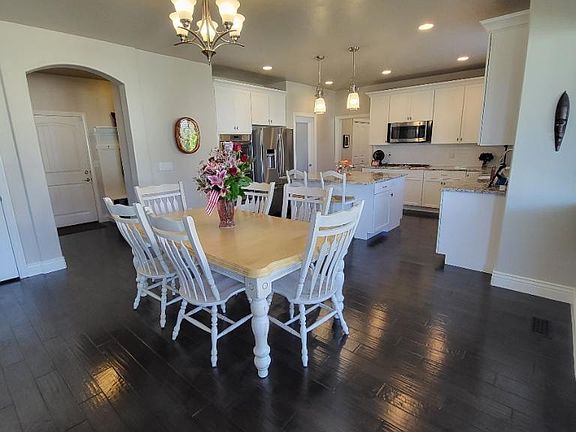 Luxury home for rent in the prestigious Skye Estates neighborhood / silicon slopes. Community pool, clubhouse with workout room and two community parks. Upgrades throughout the home. Granite countertops, 9' cielings on all three levels. Wood floors on main level. Open floor plan with large windows throughout. 14' X 14' covered deck off of the main floor kitchen with a view of Mount Timpanogos, walkout basement with cement patio. Two story entry, large walk-in pantry, double ovens. Extra large master bedroom with vaulted ceiling. All windows and doors main floor and basement are wired for ADT security system with motion detector cameras main floor entry and basement. 3 car finished garage with utility sink, work bench and cabinets. Ceiling fans in all bedrooms, loft, family room and master bath. The Tenant would pay all utilities. The owner will pay the HOA fees. No pets, no smoking.