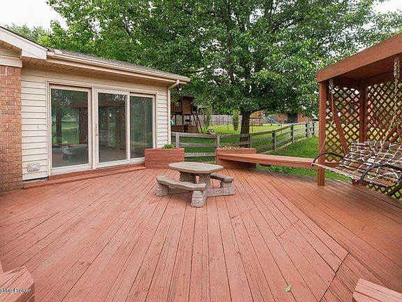 *OPEN HOUSE SATURDAY NOON-2. *PRICE REDUCTION AGAIN! Large brick ranch in the North Oldham School District. You will love the large living space, open floor plan, and ample storage of this 3 bed, 3 ½ bath home. Perfect for the home chef; this spacious kitchen has plenty of counter space, a built in pantry, stained glass accents, quality appliances, and real wood cabinets galore. An open floor plan between the kitchen, dining, and living room are ideal for entertaining. The sunroom on the back of the house will be your favorite place to relax all year long. Kids will love the giant playhouse in the fenced backyard, and basement to play on rainy days. *BACKUP Offers welcome