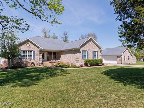 Quiet Country feel to this beautiful all brick, 3 Br, 2 Ba,1776 sq ft home with full unfinished basement on 1.38 acre lot. Seperate large 2 1/2 car garage with new door. A new 10x16 shed for lawn mower, yard and garden tools plus electric and a work Bench. Large gravel parking pad for your boat, tailer or RV. The back yard has a white vinyl privacy fence. There are are two decks, a covered deck off Great room and open for sun off the primary bedroom, with paver patio in between. The spacious living room has beautiful new grey vinyl flooring that goes throughout the house except for tile in both baths. Plus a unique vaulted ceiling with double ceiling fan and lots of room for family seating, also glass doors to the covered deck. A propane fireplace for alternate heat in case of power ou The spacious living room has beautiful new grey vinyl flooring that goes throughout the house except for tile in both baths. Plus a unique vaulted ceiling with double ceiling fan and lots of room for family seating, also glass doors to the covered deck. A propane fire outageor just to enoyy the cozy fireplace for alternate heat in case of power outage.The spacious primary bedroom and has a door to the uncovered deck,double trey ciling, big furniture aThe full basement is divided in the middle with all plumbing on one side and 9t ceiling A large whirpool tub and shower stall ready o be installed in the in the roughed in bath.nd King bed
