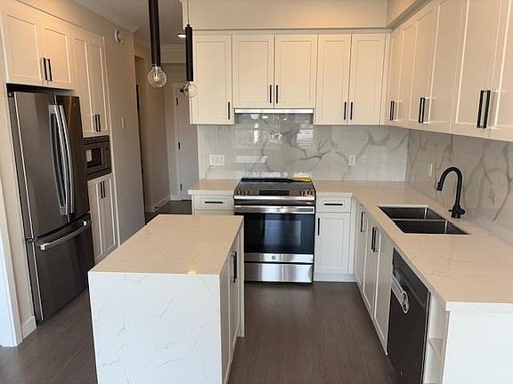 Inspire – Maple Ridge presents a thoughtfully designed 1-bedroom, plus Den with a closet, 1-bath home with 649 sq ft of smart, modern living — available for immediate possession. This functional layout is enhanced by elegant white quartz countertops, stainless steel undermount sinks, an imported Italian tile backsplash, and quality stainless steel appliances. The living space features refined crown moulding, durable laminate flooring, and soft carpeting in the bedrooms for added comfort. Enjoy access to premium amenities, including a fully equipped gym with cardio and weightlifting gear, a yoga studio, a social lounge with ping pong and foosball, and rooftop patios. Discover inspired living in every detail.