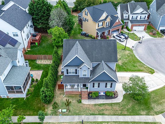 Nestled in North Raleigh, this stunning Craftsman-style home welcomes you with a rocking chair front porch and nice landscaping. Step through the front door into a spacious foyer overlooking the formal dining room with abundance of natural light, trim, and crown molding. This chef's delight kitchen has solid surface counters, stainless steel appliances, and tile backsplash. Open concept allows you to freely entertain without missing a beat! The breakfast nook has custom built sitting, new stylish light fixtures that overlook the backyard/family room. Adjacent to the family room is a private office with custom shelving/built-ins and a beautifully updated half bath and mudroom- ready for all your day-to-day essentials. Upstairs, the primary bedroom offers a spa-like bathroom w/ double vanities, large walk-in shower, and spacious WIC w/ a custom closet system. Walk down the hallway to find 3 additional bedrooms, all w/ decent closet space. The 3rd floor bonus room offers endless possibilities- playroom, exercise room, man cave? This home does not lack storage- 317sqft of floored attic & 2-car garage. Fenced backyard & Oversized driveway! 5 min drive to Harris Teeter, 12 min drive to RDU Airport, 13 min to RTP, 12 min to Umstead Park. Desirable schools!