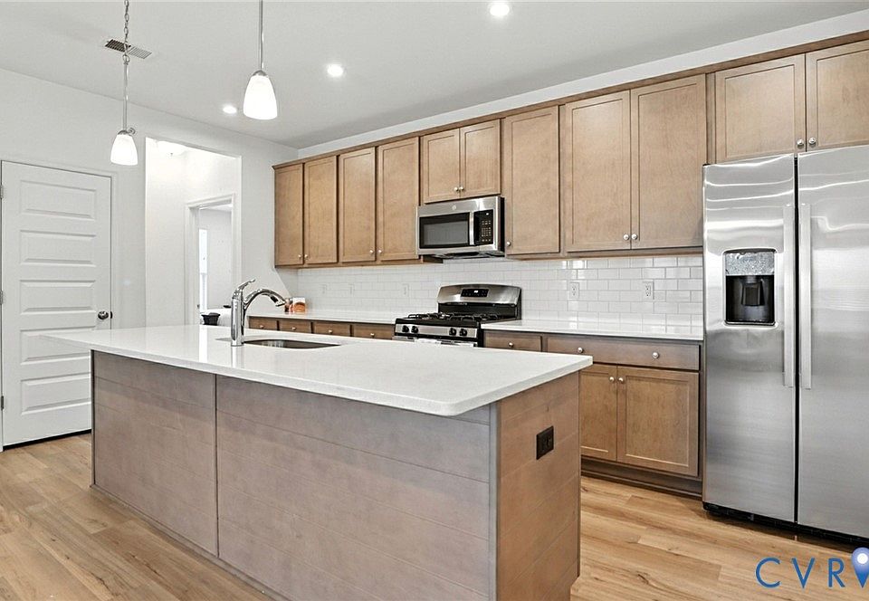 Move-in Ready Corner Condo in The Pointe at Twin Hickory! This pristine 2023-built corner unit condo offering modern finishes, low-maintenance living, and a prime location in the highly desirable Twin Hickory community. This bright and open 2-bedroom, 2-bath home features 9' ceilings, a spacious layout, and quality finishes throughout. The kitchen features large quartz island, 42" cabinets, gas cooking, backsplash, stainless steel appliances, pendant lighting, and recessed lights. The kitchen flows seamlessly into the sunlit family room that opens to a private balcony, perfect for relaxing or sip your morning coffee. Enjoy LVP flooring in the family room and kitchen, while both bedrooms offer plush carpet for added comfort. The primary suite includes a walk-in closet and a luxury en-suite bath with double vanity, a standing tiled shower, and tile flooring. The second full bath also features tasteful tilework. Hardwood staircase, ceiling fan rough-ins are included in the family room and both bedrooms, and a tankless water heater provides added efficiency. Residents enjoy access to top-tier amenities including a clubhouse, pool, tennis courts, walking trails, and more. Top rated schools. Location is unbeatable with easy access to major highways and just minutes from Short Pump Mall, shopping, dining, entertainment, and the popular Short Pump pickleball courts.