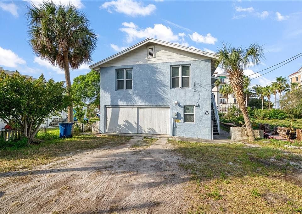 .LOCATION IS EVERYTHING! Nestled on Sunshine Lane in beautiful Treasure Island, this unique property offers an exquisite location, partial views of the Gulf and the opportunity to renovate or build your dream home. Go back to the time when beach cottage living captivated our hearts before condos. This two-story property has the main living space on the 2nd floor with 2 bedroom 1 bath with open kitchen. A large balcony faces West and has partial views of the Gulf of Mexico and amazing sunsets. The 1st level has 2 car garage with additional storage. Not even half a block to the Public Beach Access and the sand, the possibilities are endless. Take advantage of this special “treasure” on the West Coast of Florida Enjoy sunshine, gulf breezes & a relaxed pace of life an just steps from the Gulf of Mexico.