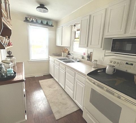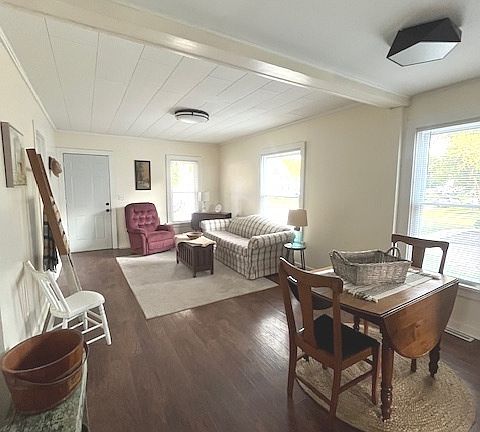 Cute! Corner lots offers a fenced backyard with a 2 car garage, new roof on house 2023 and garage 2024, covered front porch, 2 bedrooms to open floor plan, new furnace 2024 , lots of updates.