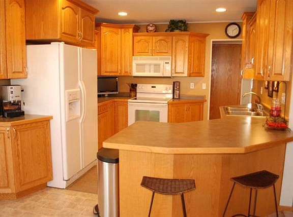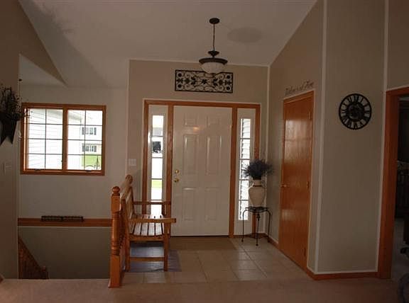 Better than new! Built in 2003. Custom kitchen w/oak Tigerman cabinets. Master bedroom suite w/trayed ceiling, walk in closet & full bath. Main floor laundry. Finished 24x24 garage w/electric heater. Maintenance free deck. Very nicely landscaped and established yard w/lots of perennials.