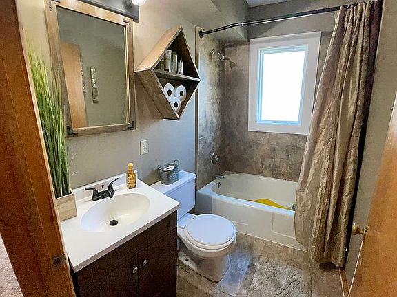 Updated house with open concept floor plan. New counter top/backsplash/sink/faucet, new/updated landscaping, new tile tub surround, new faucets throughout house, new front door, new railings. The main floor has 2 bedrooms, a full bath, storage closet, front entry, living room, kitchen, and main floor laundry. All rooms contain a large closet with spacious built in shelving. The open staircase leads to the upstairs, which contains the master bedroom, a bathroom, office area, and huge storage closet. The master bedroom closet is a large walk-in closet. The basement is half finished with updated recessed lighting. It also contains a pantry, and lots of shelving for storage. The 3 stall insulated garage out back has a spacious built in tool bench, lots of outlets, and lots of wall storage. The garage has a mounted heater inside for the winter months. The exterior was freshly painted in 2020, and the roof is scheduled to be shingled in October and is included in pricing. This house is move in ready and should be maintenance free for years. Electric heating and cooling throughout house.