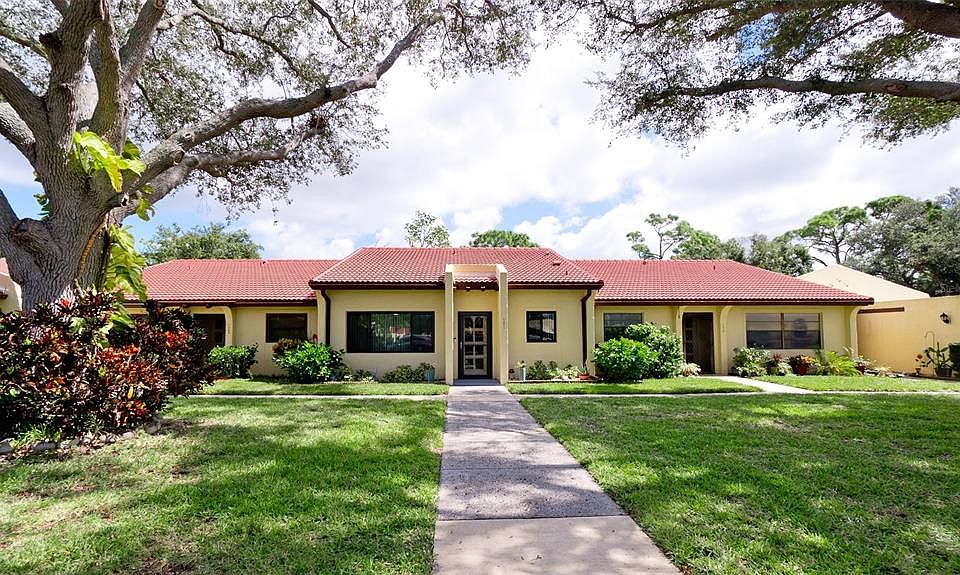 Under contract-accepting backup offers. Welcome to this beautifully updated and furnished 2 bedroom, 2 bath villa in the desirable 55+ community of Meadowcroft. Enjoy peace of mind with new hurricane impact windows and sliding door (2024) AND brand new screened lanai/porch (2025) perfect for morning coffee or evening relaxation. Step inside to an open, light-filled living room with vaulted ceilings and modern fixtures, creating a spacious and inviting atmosphere. The kitchen is a showstopper with 42 inch cabinets, quartz countertops and stainless steel LG appliances, including a washer and dryer. Both bathrooms have been tastefully remodeled with new vanities, tile and fixtures - the primary bath features a sleek walk-in shower, while guest bath offers a convenient tub-shower combination. Meadowcroft offers resort-style amenities , including a heated pool, clubhouse, tennis and pickleball courts, all in a vibrant welcoming community. Conveniently located near shopping, dining and a Florida lifestyle. Monthly fee of $579 per month covers: cable, Internet, exterior maintenance, pest control, water, sewer and trash. Includes an assigned single car carport (first step from walk-way to your left), new carport roof and structure/supports (2025). NOTE: Trim notice for 2025 property taxes are $0.00. Seller is exempt.