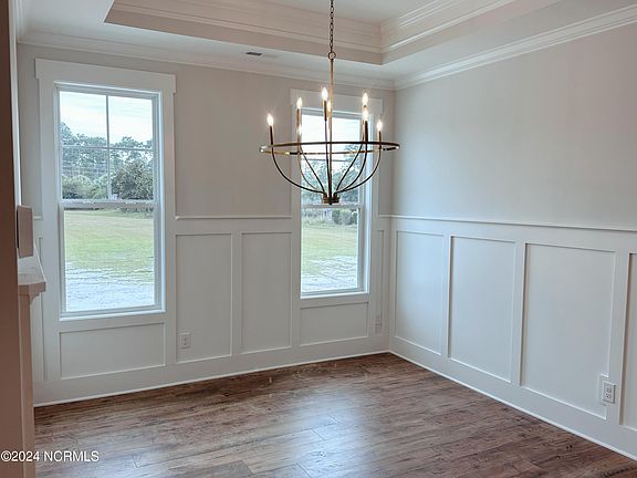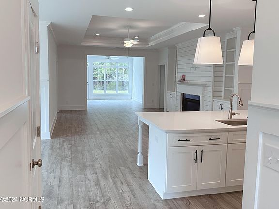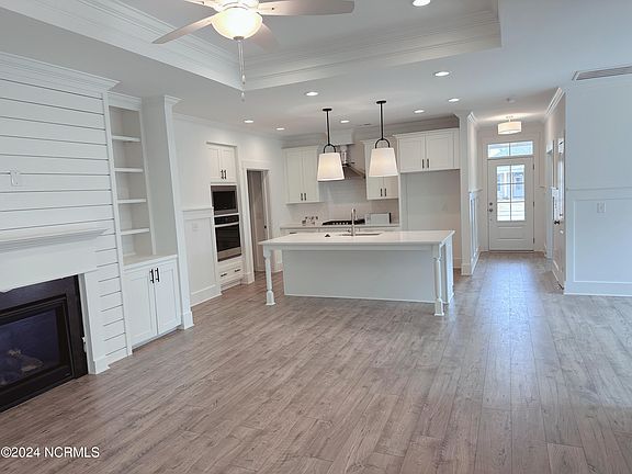 Nestled within the picturesque Palmetto Creek community, a new villa by American Homesmith is under construction. A charming rocking chair front porch beckons you as you approach, setting the stage for a lifestyle that's relaxed and maintenance-free. Step inside, and an inviting foyer greets you, adorned with intricate wainscoting. Laminate flooring, not only exuding elegance but also adding easy upkeep, guides you through this open-concept living space, smoothly integrating the dining area, great room, sunroom and kitchen. The great room is a true focal point, boasting a tray ceiling and a gas fireplace enveloped by custom built-ins. The kitchen, with a substantial island at its heart, is ideal for socializing while preparing meals. It showcases stainless steel appliances, tile backsplash, and quartz countertops. A pantry and additional storage are thoughtfully located in the laundry room just off the kitchen and garage. Enjoy your morning coffee in the sunroom, flooded with natural light on the rear of the home. The primary suite, is a private, personal retreat. It features a tray ceiling, walk-in closet fitted with wood slat shelving, and an en suite bathroom that's spa-like in its allure. This bathroom boasts a fully tiled walk-in shower, double sink vanity, linen closet, and private water closet. The 2nd bedroom with a hall bathroom, ensure ample space and comfort for family or visitors. The study or optional 3rd bedroom is located on the front of the home. Palmetto Creek's allure extends beyond your doorstep, with its proximity to the pristine beaches of Oak Island and Holden Beach. Within the community, a world of amenities awaits, including a clubhouse with a resort-style pool, fitness center, trails, tennis courts, and a putting green. Additionally, a kayak and canoe launch allows you to explore the tranquil waters. Make this your new home today!