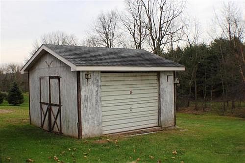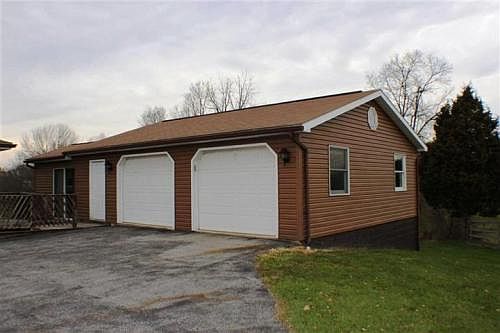Country views are amazing from this rancher on nearly 1 ac. 5+ garage & workshop area, lrg open flr plan w/open EIK, DR & lrg LR w/FP. Bonus sunroom w/heat & French doors to outside. Attached 2 car garage to rear of home. Enjoy relaxing on the rear deck overlooking the stream on the property or tinkering in one the the numerous outbuildings!