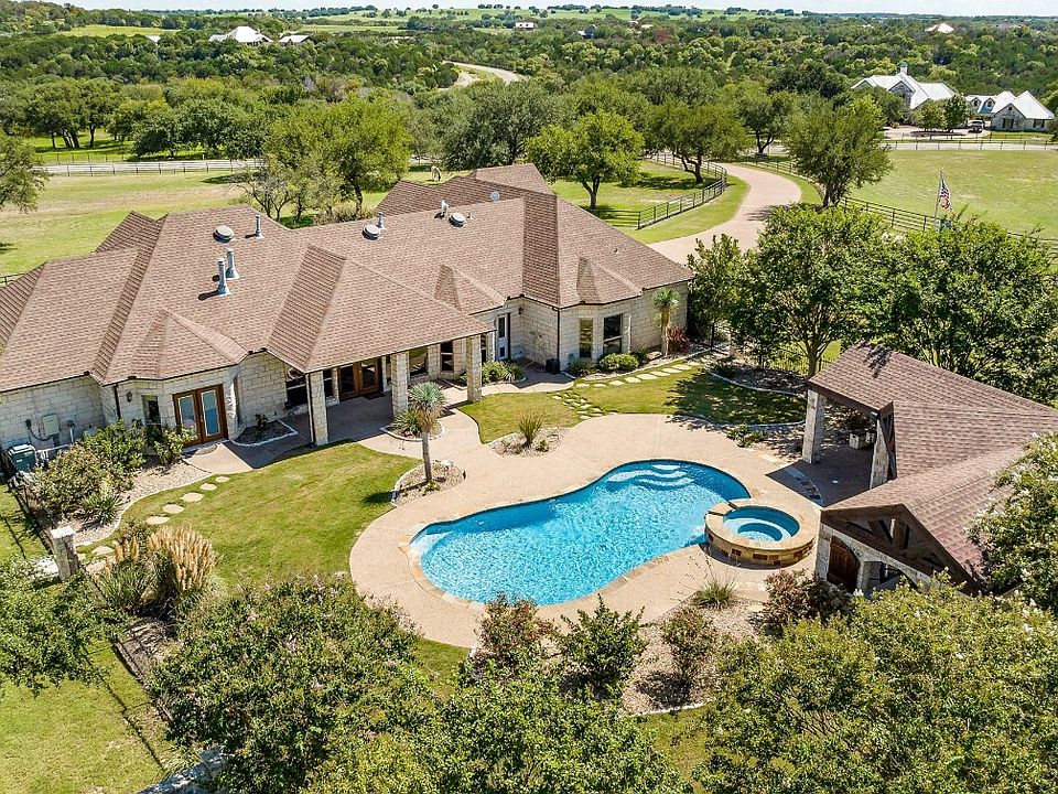 must see for scrupulous buyers looking for space away from busy town life. The property features gated entrance, aggregate concrete driveway, open concept 4BR, 3303’ custom rock home, five stall barn with covered runs, round pen, outdoor arena, pool, hot tub, oversized luxurious outdoor entertaining space, exterior lighting, extensive landscaping, and much more. This is a truly special piece of ground located in one of the hottest areas in Texas!!