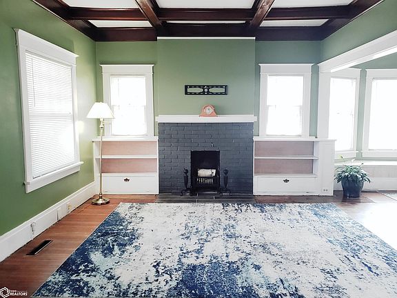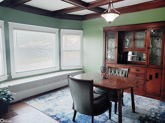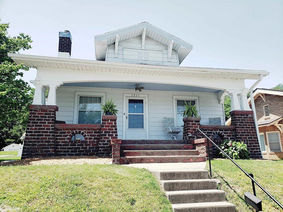 2 BEDROOM BUNGALOW WITH TONS OF CHARACTER -- You’ll fall in love with this one the moment you walk in! Gorgeous open living and dining room area featuring original hardwood flooring, intricate fireplace and built-ins, coffered ceiling, and window nook. Over 1,200 sqft of living space with 2 bedrooms, a completely renovated bath, new carpeting, new kitchen flooring and more. Outside you’ll love relaxing on your wide front porch with just a peak of the river, the cute fenced in yard, and your 1 car garage with additional storage. Located a short ways from the Mississippi River and many local dining, shopping and entertainment options in downtown Burlington. Additional Details -- New Roof 2021, Kitchen Appliances & New Washer/Dryer Included, Central Air, Gas Furnace, Backdoor Mudroom, Lighting & Electrical Updates