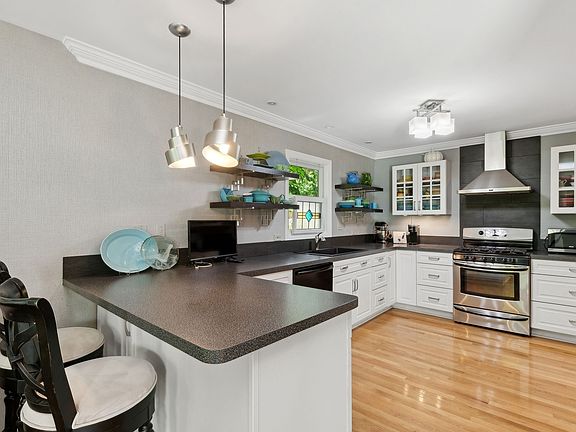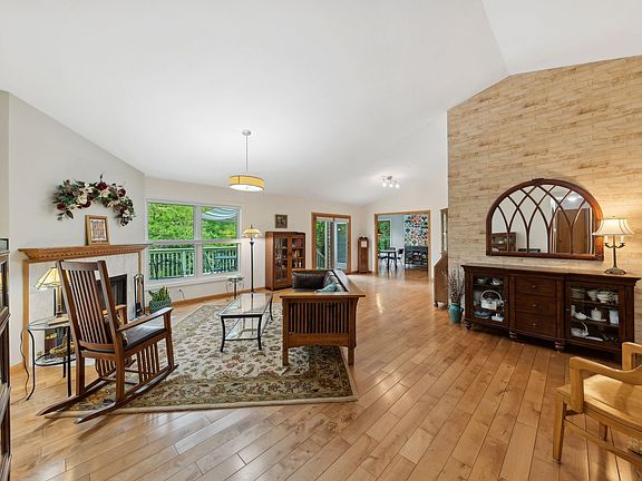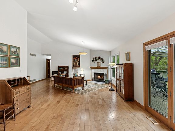 Embrace this welcoming rarely available ranch home located within walking distance of downtown Algonquin. This sun-drenched home has a fabulous open floor plan, spacious rooms and beautiful details including hardwood floors and high end finishes. A vaulted ceiling family room, dining room and cozy fireplace is a wonderful layout to host family or friends! The breakfast area with sunlit windows is a great place to enjoy your morning coffee. Meal prep is a breeze in the beautiful chef's kitchen with a breakfast bar, white cabinetry, & all the stainless steel appliances. This 4 bedroom, 3 bath home has a spacious primary bedroom with walk-in closet and ensuite private bath. An ideal finished walk out lower level has plenty of space for lounging or entertaining in the recreation room. There's an additional potential bedroom or office and a full bathroom. Perfect for family and guests! This home has plenty of storage and tons of closets for all those things you need out of site. Enjoy the views of the private backyard and the lush gardens from the deck. Close to schools, shopping, and restaurants. Quiet and comfortable living at an incredible offering!