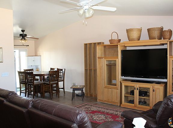 Great Desert Home! 3 Bedrooms 2 baths. Offers tile flooring throughout living room, dining, kitchen and baths, carpet in the 3 bedrooms. The master bedroom offers a walk in closet and bath. This is an open floor plan, the kitchen has lots of extra custom built storage, and counter tops are also custom, butcher block. The owner customized the laundry in the kitchen to include additional pantry storage. The owner will be leaving all the appliances including fridge, range, dishwasher, washer and dryer. This homes updates in recent years include a tankless water heater, this is great for winter visitors, no worrying about traditional tanks overflowing while your not there! The HVAC was updated in 2018. There is a water purification system that will stay. Vacant land in front, behind and to the north, you have great views! To complete this home on a large lot there are sprinklers back and front, a large covered patio, a small green house with water and planters around the yards, and a 2 car garage. Another great benefit is this property is on public sewer not septic. This would be a great home for year round living, and is set to go for desert visitors!