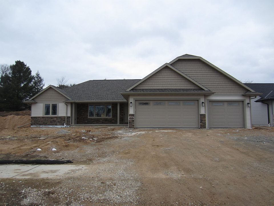 Quality built spit BD ranch w/3 BD. Open concept design, LV Plank flooring, supreme custom maple cabinetry w/quartz countertops, kitchen island work counter, walk in pantry. Gaslog FP, bumped out patio door to 12x12 concrete patio. 1st flr laundry w/tub, door to backyard. Primary BD w/walk in closet, full bath w/step in shower & double vanity. Rough in basement for future bath, egress window. Oversized garage w/trench drain, keyless pad & openers. Stairs to basement, front covered porch and more! Taxes to be on new 2024 AV. Exterior concrete and final rough grading to be completed weather permitting and is included in price. Addendum 1 to be included w/all offers to purchase.