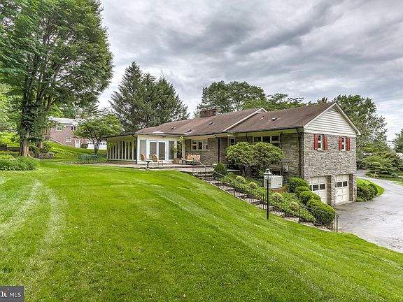 Price Adjustment!. This architecturally balanced stone rancher will steal your heart away! Handsome Living and Dining rooms offer wood burning fireplaces & hdwd. under carpet. The Sunroom is exquisite with views of beautifully maintained stone terraces. Pella windows are featured w/interior shades A cheerful & bright escape awaits you even on the cloudiest days Three bedrooms w/hdwd. flooring are in the quiet zone. Two 1960's baths w/tub/shower, tile floors, walls and vanities that are in perfect condition! The Fam.Rm./Den has recently uncovered hdwd. wall to wall bookcases, walk-in cedar closet and two extra closets. All the makings of a guest room with a powder room next door. The spacious kitchen offers Corian counters, SS appliances, generous breakfast area and pantry cabinetry galore! 1st fl - approx 3142 sq. ft. The lower level offers approx. 2758 sq. ft with abundant recreation & family room areas, kitchenette, bath w/shower, huge storage area w/closets, furnace room, arts & crafts area and access to the 2-car garage.