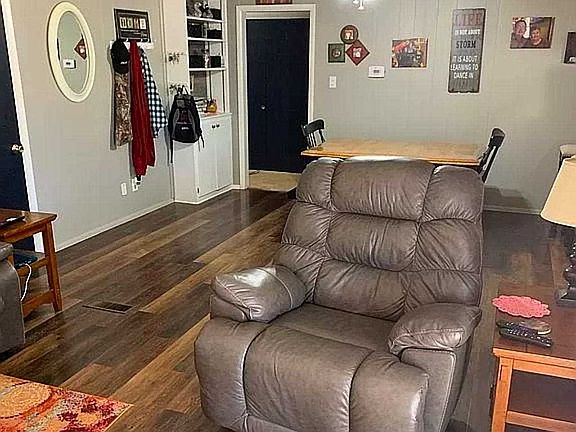 WELL CARED FOR HOME. Imagine moving into a large, comfortable home. Corner lot (.75 acre) in Cushing. Updated interior paint, countertops, flooring. Plenty of storage throughout home. Entry closet and 2 hall closets. Large window in living room looking out onto front yard. Den is open to kitchen/dining. Fireplace. Kitchen has updated countertops and paint. Stainless appliances. New gas cook top and vent hood. Hall bath with tub/shower. Large bedrooms with great closets. Primary suite bath with standup shower. Large patio with nice pergola. Chain fence around back yard area. PROPERTY EXTENDS WELL BEYOND CHAIN FENCE. Large insulated metal shop 24x30 with concrete and electricity. Storm cellar. 10x20 outbuilding and 10x12 shed in GREAT CONDITION. Above ground pool will be perfect this summer!