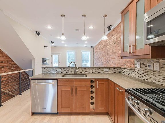 Spacious, renovated, three story 2 bedroom + den, 2 full bathroom unit in the heart of Columbia Heights/U Street, available now. One king size master bedroom with attached bath and walk-in closet, one queen bedroom with separate bath, and den/office loft space that leads out to rooftop. Living room has a private balcony space and third level boasts a stunning, large rooftop deck with views of the capitol and built in speaker system. Hardwood floors, huge closets, exposed brick walls and brand new appliances. Garage parking included. Close to DCUSA Shopping Center, Trader Joe's, a 10 minute walk to U Street and Columbia Heights metro stations and tons of restaurants and bars. Amenities: Washer/Dryer, Central Air/Heat, Balcony/Deck, Hardwood Floors, Garage Parking, Dishwasher, Garbage Disposal, Entertainment System with Surround Sound Included. Water is split between tenants of both units. Tenant pays for all other utilities (gas, cable, electric). Small pets allowed on a case by case basis. Longer lease preferred.