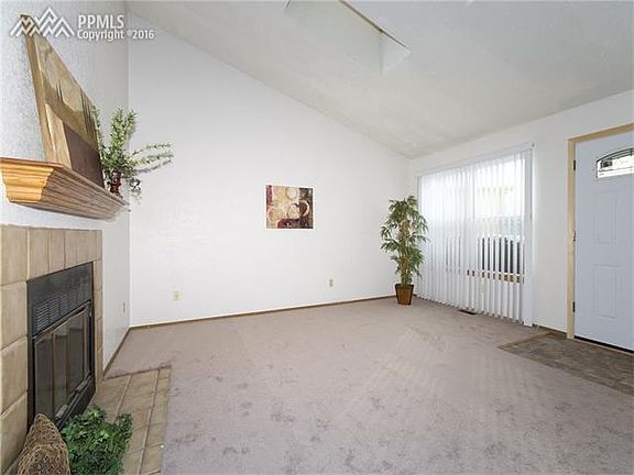 Exciting Townhome, Move-in Ready! This is one of the largest units in Firefly and is an end unit. Ranch style with an unfinished basement, bring your ideas! NEW carpet, NEW paint and much more. Inviting foyer entry, dining area with a kitchen pass through window. The living room has a cozy wood burning fireplace with tile surround, a vaulted ceiling and skylights. In the kitchen you will find useable counter space and warm cabinetry. Master has his/hers closets. Attached one car garage. Continued... ...View of Pike's Peak from the private and peaceful grassy backyard with mature trees. Near Peterson AF and Ft Carson, walking distance a block away to shopping/groceries, Sand Creek trail and Wildflower park. This home has been updated and taken care of also has a new water heater, newer sink and bath fixtures, new kitchen disposal and new plumbing under sink, newer window well in basement. New front door, security screen and new firewall door from garage. Duct work professionally cleaned, furnace passed inspection.