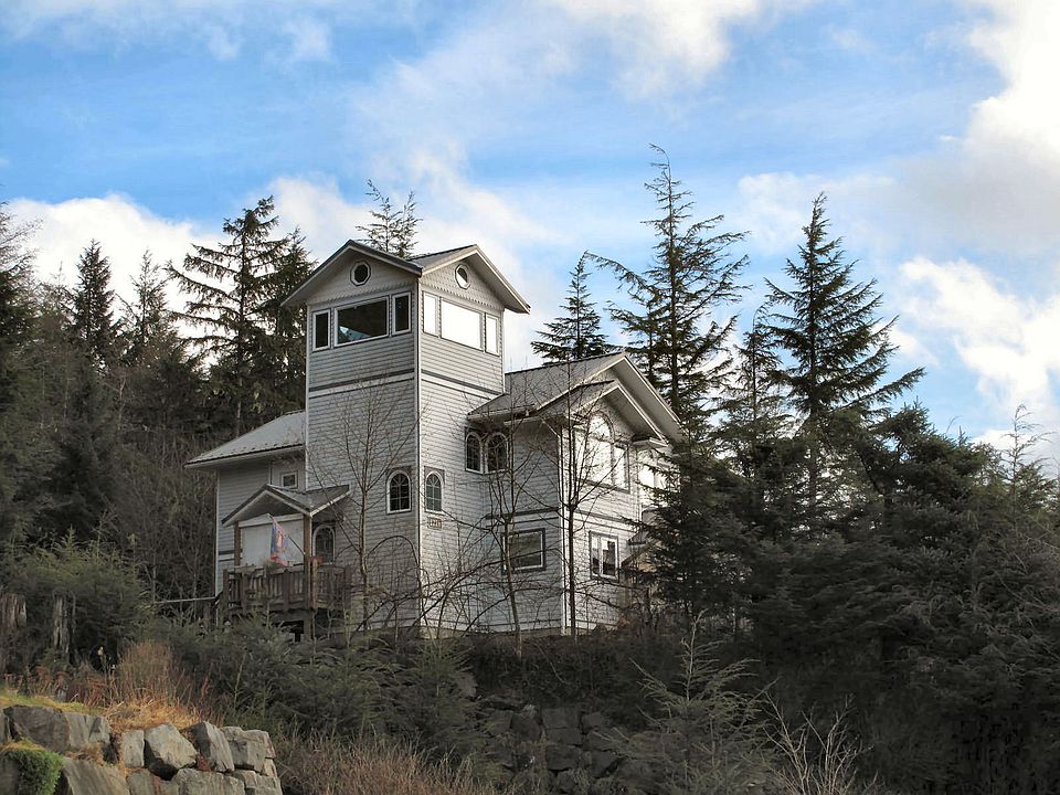 Enjoy your 360 degree views from viewing tower, perfect for you home office, studio, or a place to relax. Oak hardwood floors, slate tile, vaulted ceilings, and interesting roof lines create a wonderful ambiance full of light in this bright interior. The master suite is located on the main floor. Two additional bedrooms are located on the first level of the home. There is a heated double car garage, a paved driveway, and quick access to the Sitka Cross Trail. A deck is located off the dining area.