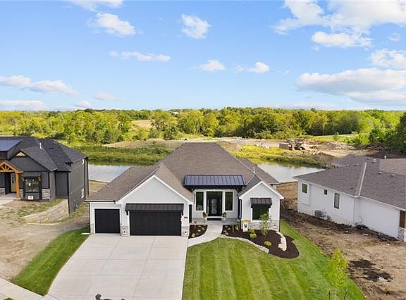 ~MOVE-IN READY~ This Gorgeous Reverse 1.5 From C&M Builders Backs To Private Creekmoor Lake. The upgrades and special amenities are amazing! Entering the home through the Grand Entrance & you see a view of water in your back yard past your covered deck! Main floor has natural wood floors, tall ceilings, main floor master bedroom w/vaulted ceiling, custom wood accent wall, wall of windows w/views of the lake. Access door to deck with ceiling fan. The Master Bath Is Amazing w/Oversized Soaker Tub, Upgraded Quartz Counters & Tile Floor, Custom Cabinets, Walk In Shower & Huge Walk In Closet w/Built In Dresser & Room For Any Wardrobe! The Main Floor also has a 2nd Bedroom w/Full Bath, Great Room w/Modern Fireplace & Herringbone Shiplap, Exposed Beams, Built In Cabinets, Modern Kitchen w/2” Thick Quartz Counters & Oversized Island, SS Appliances Include: Gas Cooktop, Vent Hood, Wall Mounted Oven,Microwave, Dishwasher, Painted Cabinets some w/Glass Doors & Accent Lights. This Kitchen Is A Chef’s Dream. Dining Area w/Vaulted Ceiling, Exposed Beams, Dry Bar w/Quartz Counters & Wine Fridge. Oversized Pantry w/Custom Built Ins & Grocery Door From Garage, Laundry Room w/Custom Shelves & Cabinets & Sink w/Quartz Top Plus Mud Room. Walkout LL w/2 Generously Sized Bedrooms w/Ceiling Fans & Window Shades Share Full Bath w/Shower Over Tub & Granite Counters. LL Rec Room Is 800+ Sq Ft w/Built In Speakers, Amazing Bar w/Custom Cabinets & Granite Counters Additional 1/2 Bath, Workout Room & Bonus Room Under Suspended Garage (22’ x 28’) For Extra Storage Or Workshop. Stucco Exterior, Windows with Black High End Casement, Designer Window Coverings, Covered Deck With Fireplace And TV Area, Stairs Down To A Poured Concrete Patio that meets up with the walkout basement. Creekmoor amenities include use of Lake Creekmoor, Creekmoor golf course, clubhouse with exercise facility and restaurant and bar, plus two community pools, tennis courts and walking trails. FORMER MODEL NOW FOR SALE!