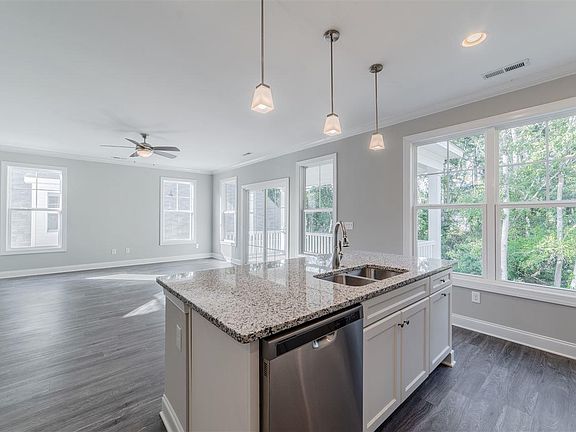 NEW CONSTRUCTION - East of Hwy 17 - Built by a Local Custom Builder, this brand new 2 story home is located in the gated community of Waters Edge in North Myrtle Beach. This 3 Bedroom, 2.5 Bath, 2 Car Garage home features laminate vinyl plank floors & crown moulding throughout the living areas, an open floor plan with an abundance of windows, great room, kitchen with Whirlpool stainless steel appliances, 42" upper custom cabinets, soft close cabinets & drawers, granite counter tops, huge island with breakfast bar, pantry, and a separate laundry closet that includes cabinetry & a Whirlpool washer & dryer. The upstairs Master Bedroom features a spacious walk-in closet and a bathroom that includes tile floors, a walk-in shower, double sinks, and granite vanity top. The 2 downstairs bedrooms are split by a Jack & Jill bathroom. All Bedrooms feature upgraded carpet & ceiling fans. Exterior features include 2-car garage with garage door opener, upstairs porch, downstairs porch, large yard, full landscape package with irrigation, and concrete driveway to the street. Neighborhood HOA amenities include swimming pool and clubhouse, and yard maintenance. This golf cart friendly Neighborhood is located just a short ride from all the fun Cherry Grove Beach & Ocean Drive have to offer.