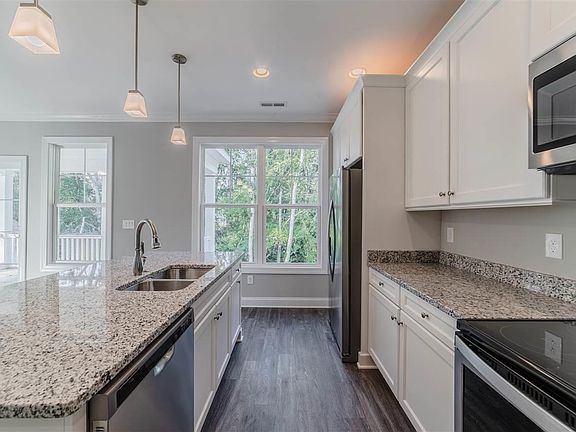 - Features: Breakfast Bar, Kitchen Island, Pantry, Stainless Steel Appliances, Solid Surface Counters